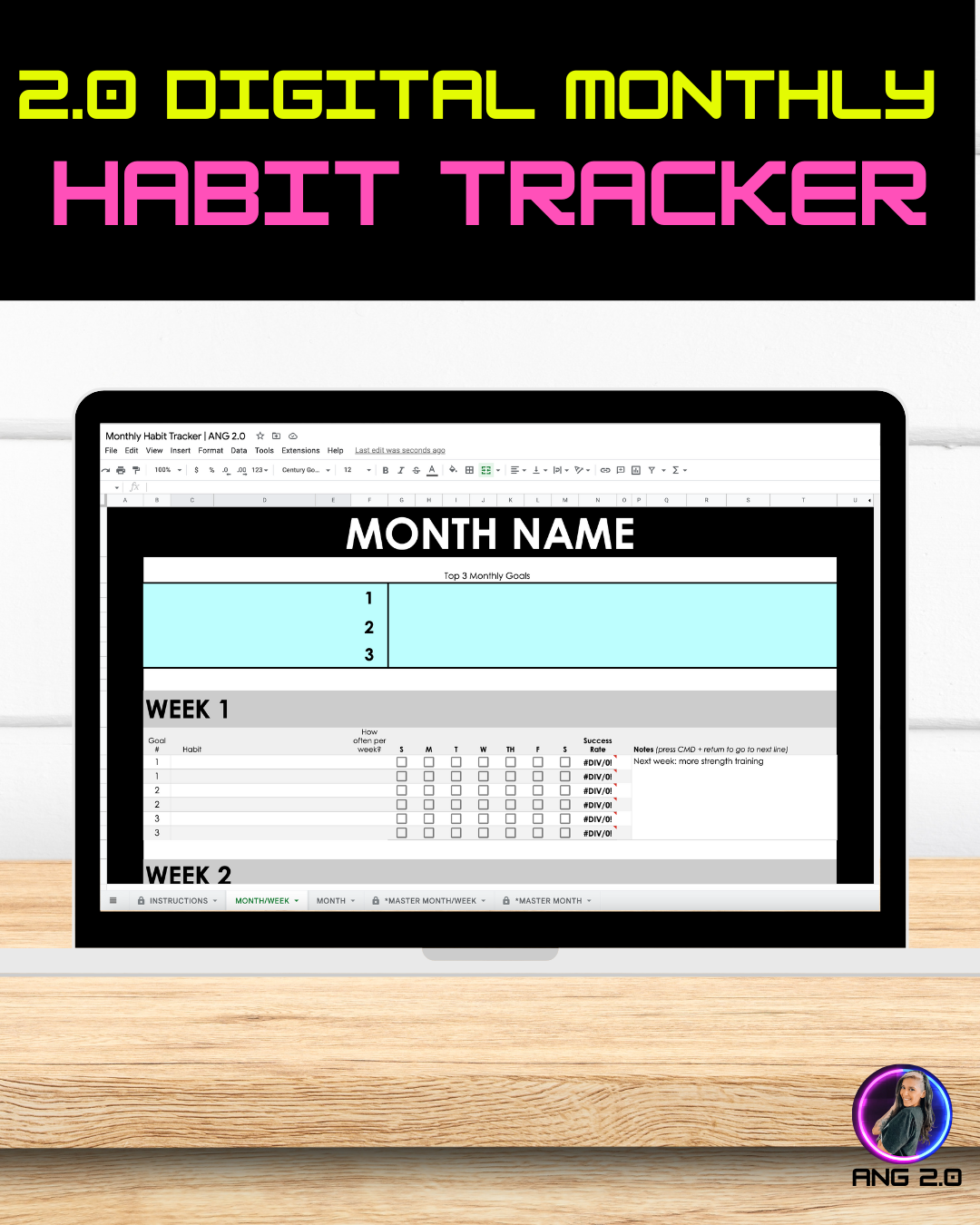 Put your goals into action! This digital habit tracker will help you set your goals, view your progress, and help you do it all again! Note: this is a Google Sheets document.